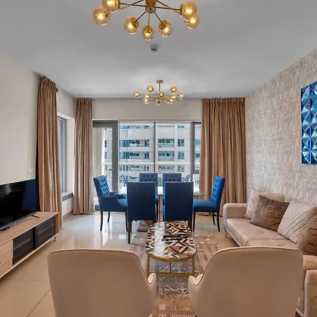 The 107 m^2 Bellavsita - 2 Bedroom Apartment Fountain View Dubai offers easy access to such tourist sites as Farmers Market on the Terrace, located about 5 minutes' walk away. Guests can lounge by an outdoor swimming pool before taking a cooling dip.
